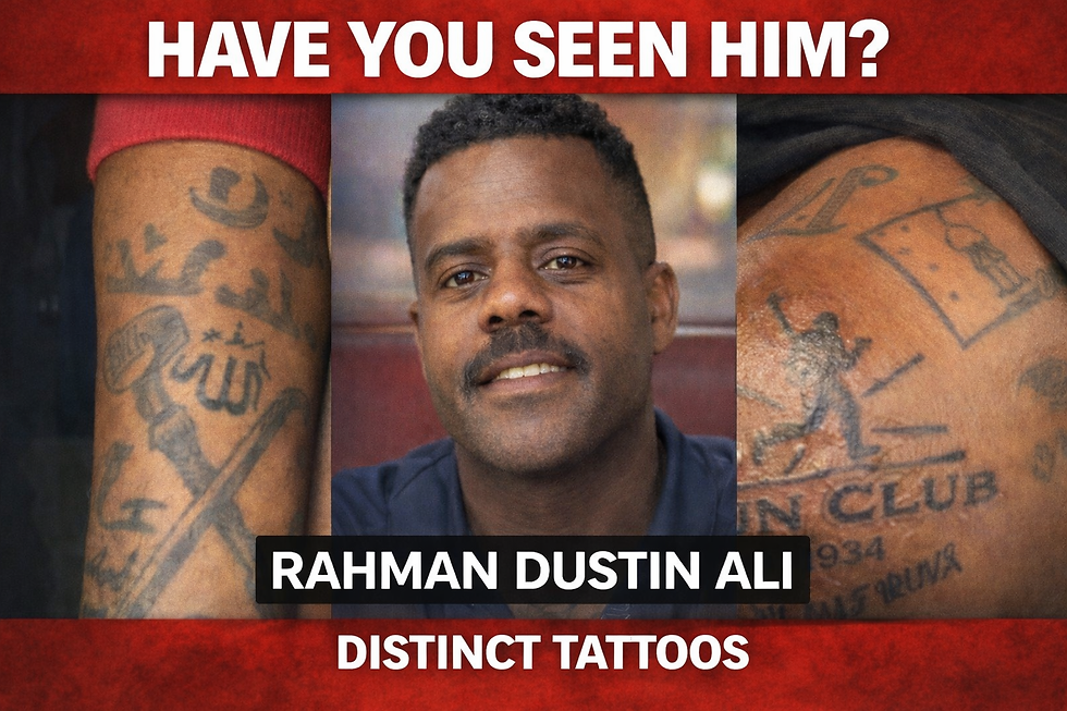 Rahman is 48 years old, approximately 5’8”, and weighs around 170 pounds. He has multiple tattoos, including the words “RUN CLUB 1934 SAFA & MARWA” on his left shoulder, along with tattoos on his chest, arms, abdomen, and forearms. At the time he went missing, he may have been wearing a blue jacket and blue jeans.